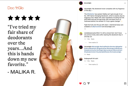 El primer paso de nuestro proyecto fue auditar e investigar los feeds sociales de los clientes de la agencia. Los principales clientes eran Doc & Glo, fundada por la estrella del tenis, Sloane Stephen, y FitGlow Beauty, una pionera en el espacio de la belleza limpia. Después de la auditoría, comencé a elaborar entre 30 y 60 leyendas para ambas marcas y las compartí junto con los hashtags con el fundador de la agencia. Los subtítulos incluían textos ingeniosos y de tendencia que resonarían entre la generación X y la generación Alfa. El fundador de la agencia revisaba el texto y yo lo finalizaba. A partir de ahí, lo subía y lo programaba en Later, asegurándome de que todo el texto y los hashtags estuvieran programados en las horas de máxima actividad de los seguidores. Y, ¡listo! Se programaban las publicaciones y los seguidores y la interacción llegaban en masa.